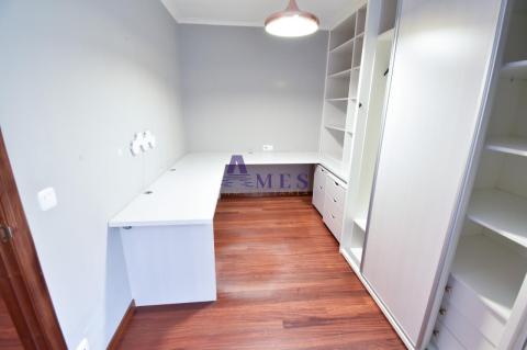 La planta superior cuenta con dos dormitorios exteriores equipados con armarios empotrados. Uno de ellos, tipo suite, dispone de cuarto de baño integrado para mayor comodidad. Además, cuenta con una habitación amueblada como oficina, también con armarios empotrados, perfecta para quienes necesitan un espacio de trabajo o estudio en casa.